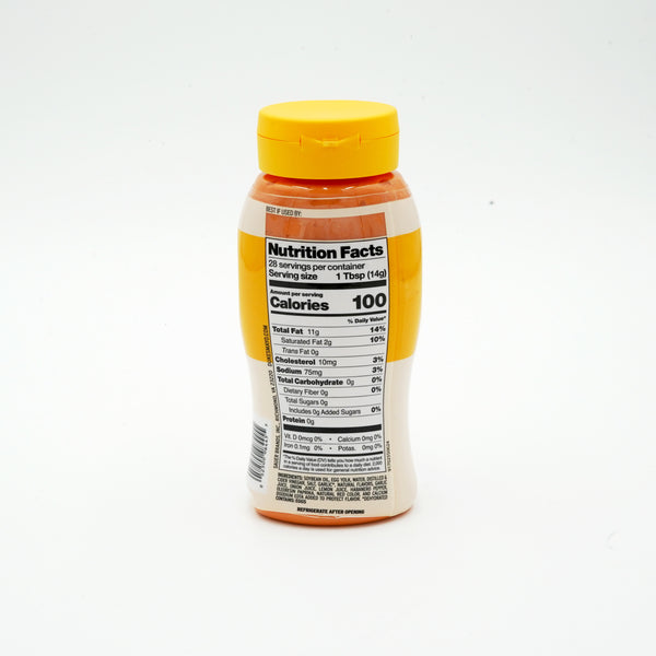 Soybean Oil, Egg Yolk, Water, Distilled and Cider Vinegar, Salt, Garlic*, Natural Flavors, Garlic Juice, Onion Juice, Lemon Juice, Habanero Pepper, Oleoresin Paprika, Natural Red Color, and Calcium Disodium EDTA Added to Protect Flavor. *Dehydrated. Contains: Egg.